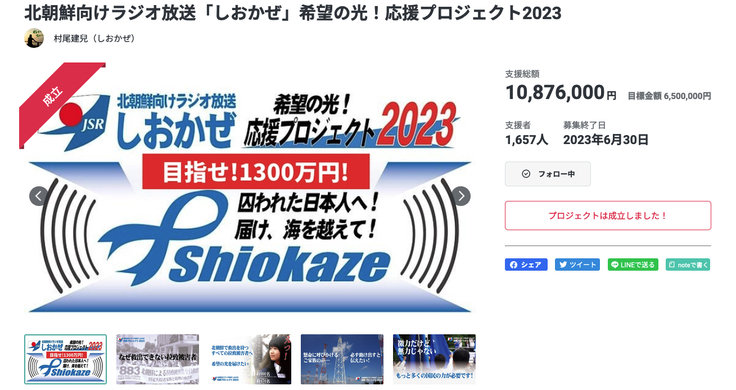 クラファン挑戦は、北朝鮮に囚われたすべての日本人へ希望の光を絶やさないため、年間3300万円の資金を何とか確保するためですが、一方の側面である拉致問題の訴求効果にも大きな貢献力がある事も重要な要素となります。