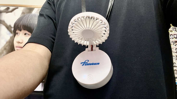 熱中症対策の必需品!USB充電式!首からも下げられ、机に置いても使える2way!