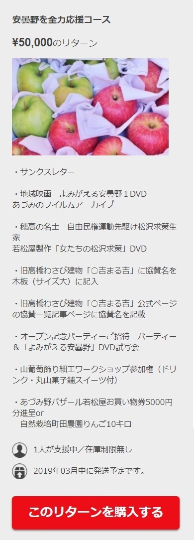 応援コースのリターンについて!5万/1万/5千の3種類。その①