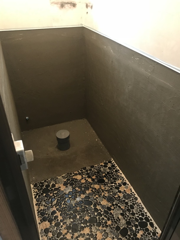 モルタルが、なかなか乾かないのでストーブで暖めること2日目、
