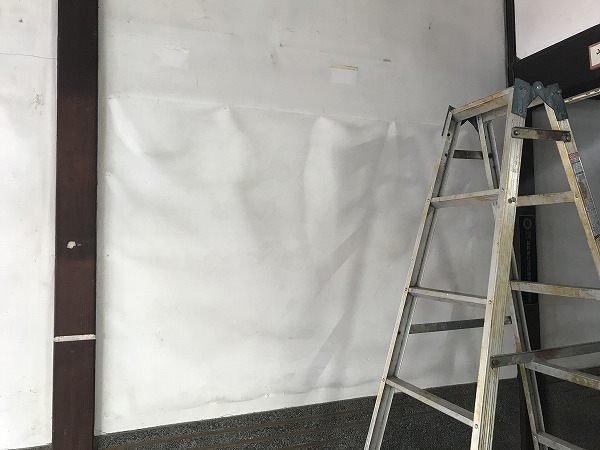 まるでシワだらけの模造紙がはってあるかのようなこの壁。