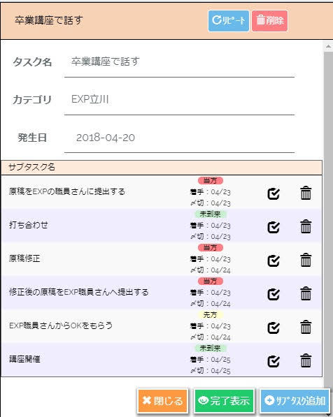 - 完了タスクページ新設 (2018年11月1日までに実装)