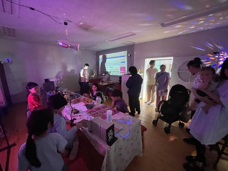初日となった6月15日には、近所に住む子どもたちをはじめ、旧聚富保育所の卒園生や、AISプランニングの取り組みに関わっていただいている方々が遠方からを多数足を運んでいただき、このような場所にも関わらず80名のお客様にご来館いただきました。