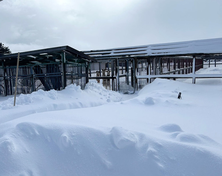 真冬は時には氷点下20度にもなる長沼町 次の冬前に老朽化した犬舎の暖房設備を整えたい