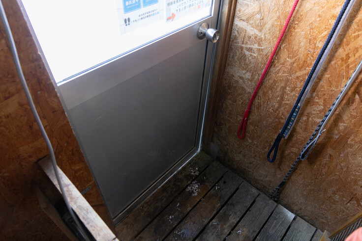 入口の扉の修繕は何度か施してきましたが、長年の老朽化によりサッシが歪み、扉を閉めても隙間が出来てしまう状態になっています。