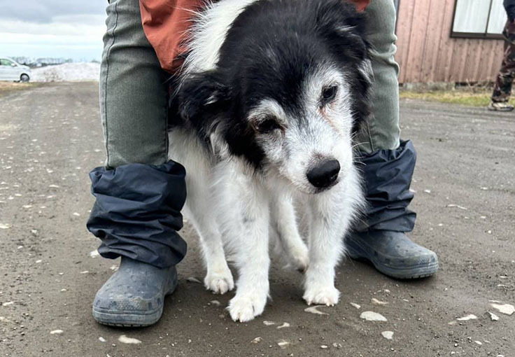 スモーキーは、噛むなど威嚇が激しく一般譲渡が難しいと、 2020年6月に静内保健所から引き取りした現在 推定17~19歳のオスの高齢犬で、昨年2024年6月から終生預かりボランティアさんのお宅で暮らしています。