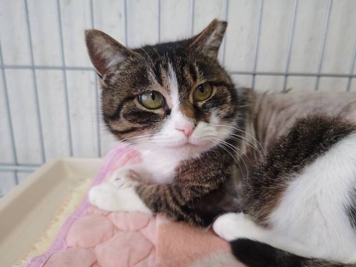 猫エイズは陽性ですので一頭で飼育いただくか、同じく猫エイズ陽性の猫を飼育されている方に。