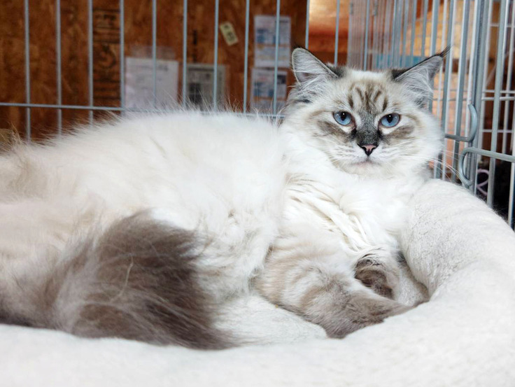 シャム系で長毛のゴージャスな推定10~11か月の女の子です。
