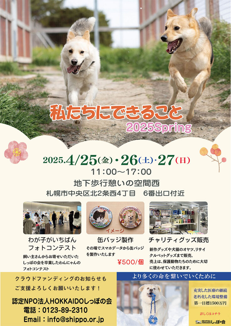来週、地下歩行空間で開催するイベント「私たちにできること2025Spring」では、卒業わんにゃんのフォトコンテストも実施いたします。