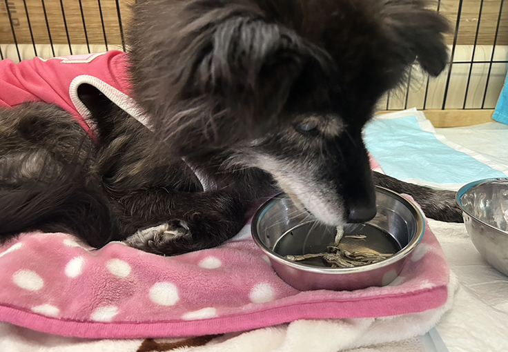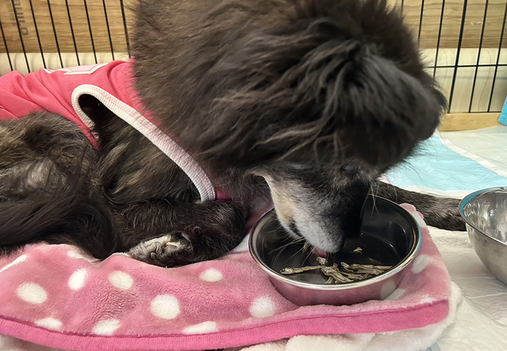 まだまだ食べムラがあり、食べてほしい量には届きませんが、毎日の点滴で脱水等を軽減しながら、トロトロにした流動食をシリンジで食べたせてあげています。
