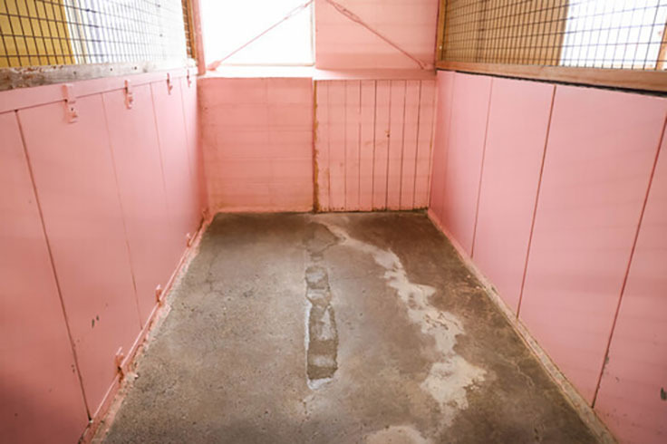 ただ、犬舎の床はこれまで随時モルタルで補修してきたこともあり、床は凸凹しているところが多く、そのまま長尺シートを貼ると剥がれの原因となるため、まずは床を平らにする工事が必要とのことです。