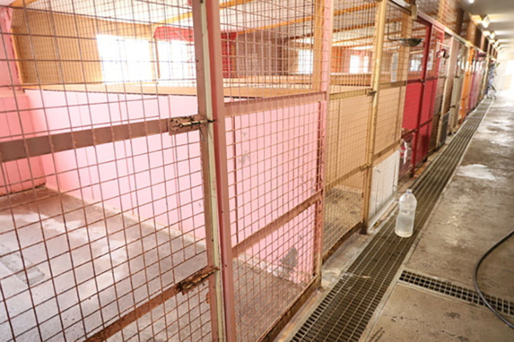 また、通路側は、犬の脱走防止や破壊にも耐えられよう全室が鉄網で出来ています。