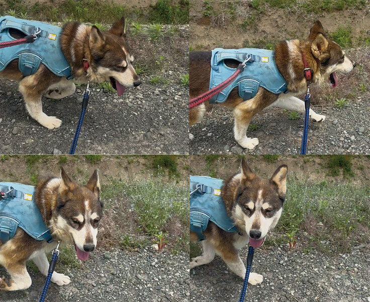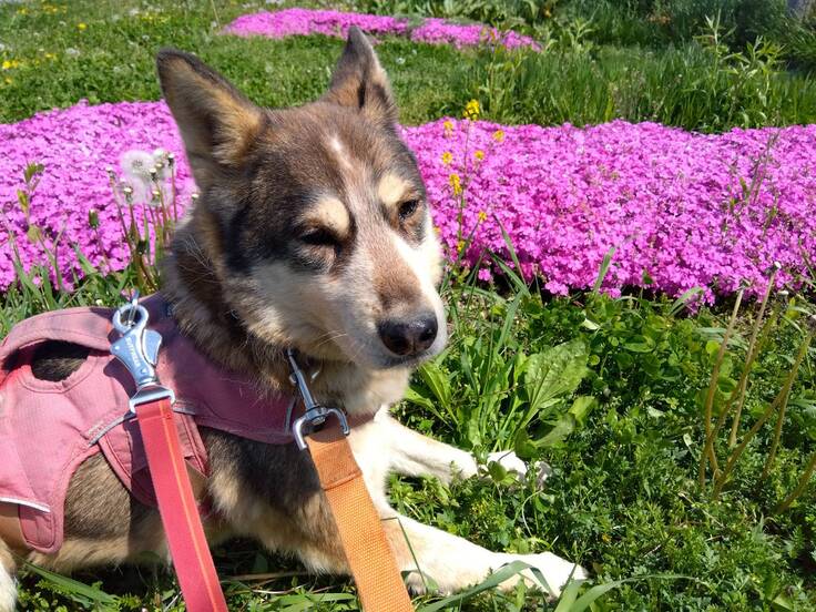 臆病な性格は抜けなくて散歩のハーネスをつける時は固まってしまうけど、手順を覚えてハーネスに自分で前足を入れてくれる賢い子です。