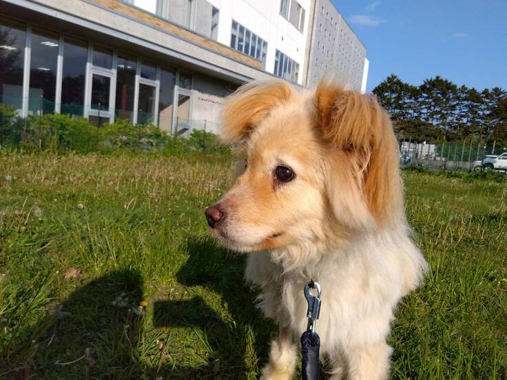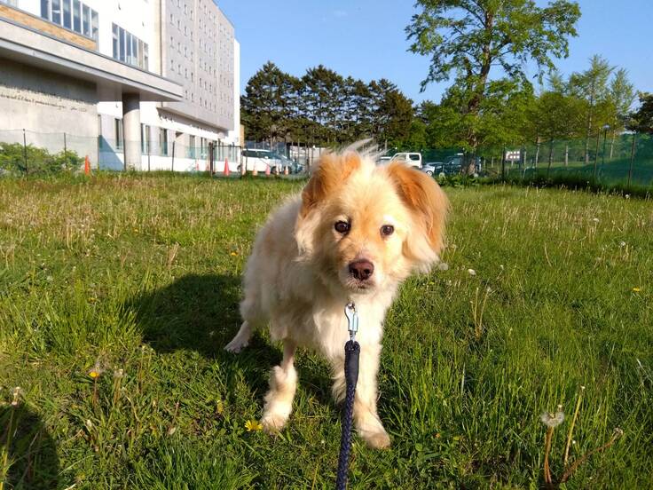 <酪農学園大学附属動物医療センターのドッグランで>