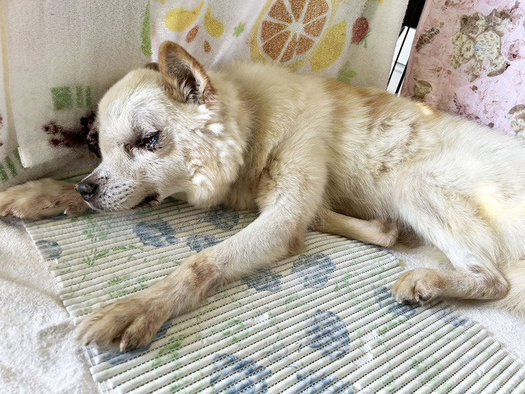 最後の夜、もう意識がないのかもと思いながら、下痢で汚れたお尻を拭いたスタッフに、しっぽをウネウネ動かし「ワンっ!!」と怒り、ちゃんと分かってるよと教えてくれ、最後まで食べ続け、体重もほとんど減らず、男らしい最後でした…。