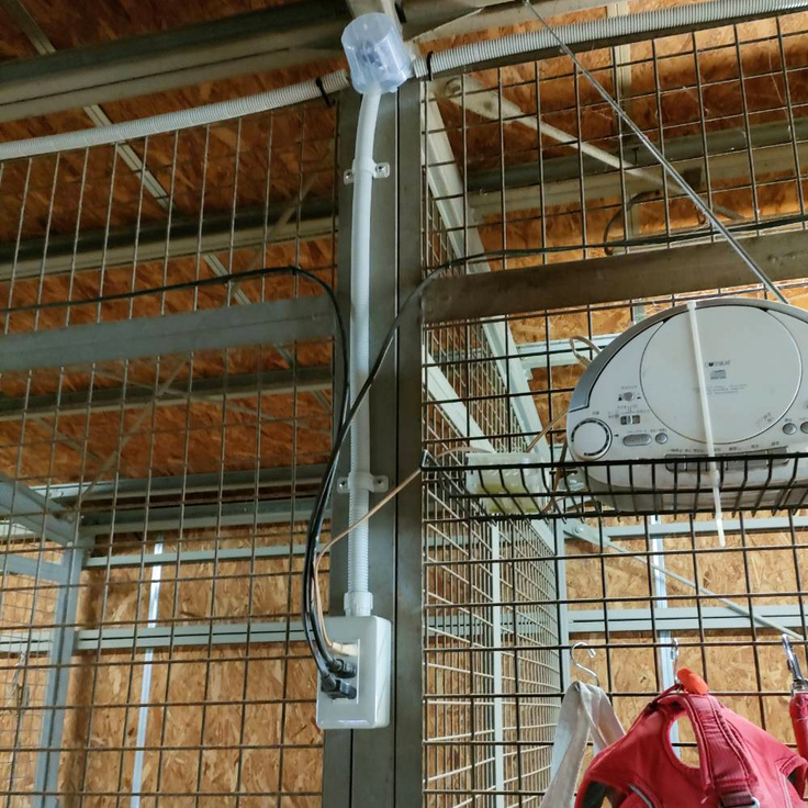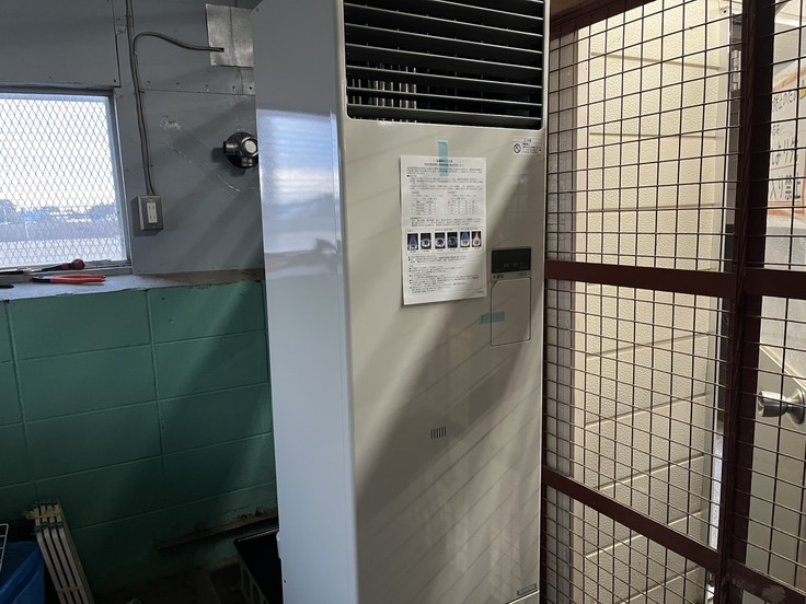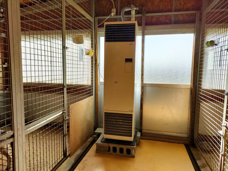 これにより、入口側の既存ストーブと合わせて2台体制で犬舎全体を暖めることが可能となりました。