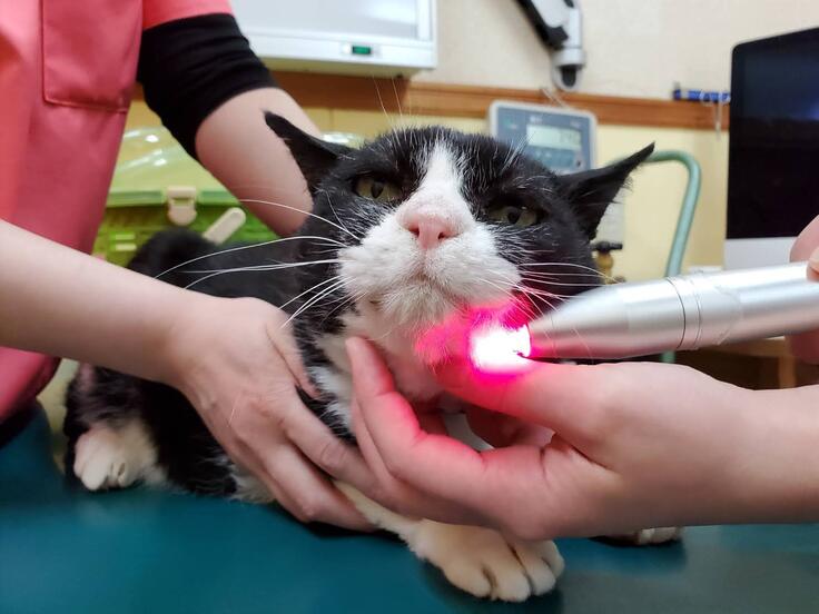 病院でレーザー治療を受けるももやんくん(高齢FIVキャリア)