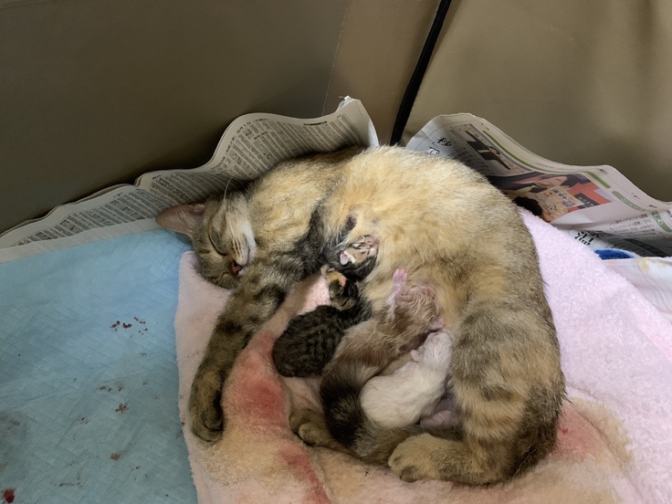 若いねこでしたが、無事に4匹の赤ちゃんねこを出産いたしました。