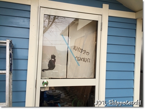 「猫舎」完成のお祝いに作って頂いた「SHIPPOTENSHI」ロゴの暖簾♡