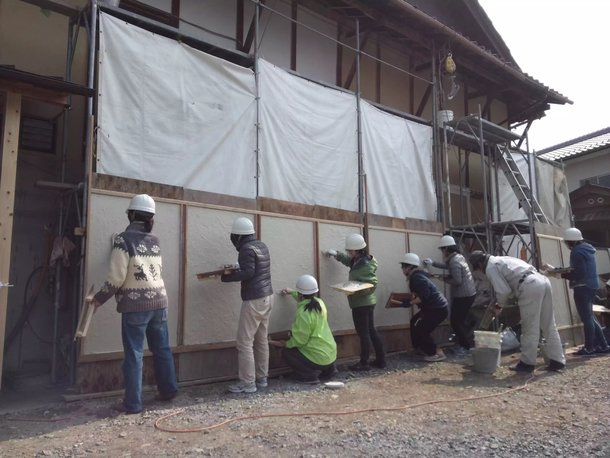 本日2/27、無事「漆喰塗りWS」を総勢15人で実施することができました。西田左官店にお世話になり、まずはコテに土を乗せることから練習し、ボードにむかって中塗り、下塗りと本塗りを特訓していただき、実際の壁に塗るところまでさせていただきました!
