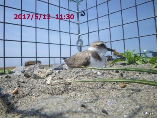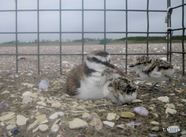 設置した囲いの中で子育てをするシロチドリ。