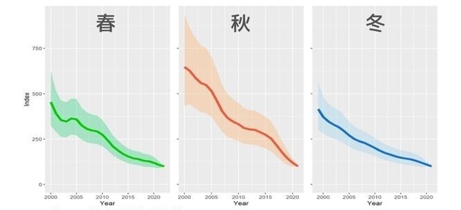 どの季節も80%以上の減少を示し、ここ20年減り続けています。