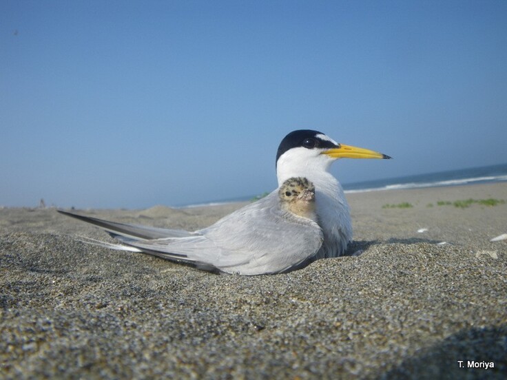 シロチドリが子育てする環境では、別の野鳥コアジサシも子育てをしています。
