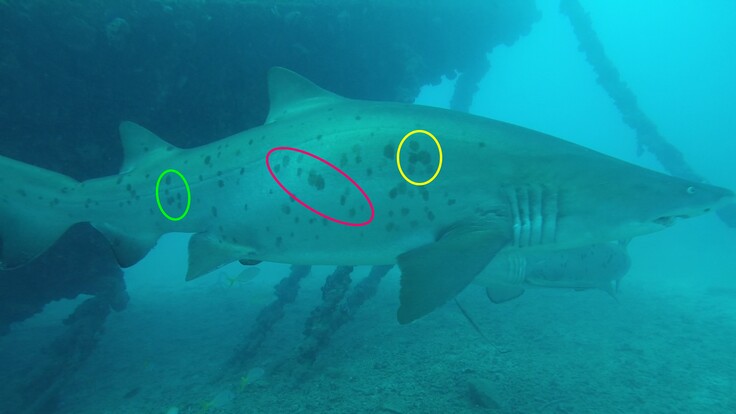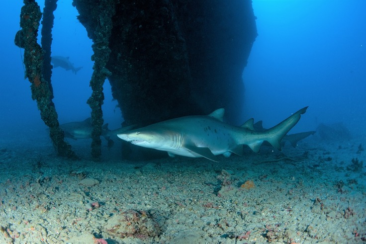 ▲ニ見湾沈船ポイントのシロワニ(Copyright © 2024 小笠原ダイビングセンター All Rights Reserved.)