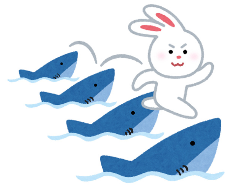 まず、ウサギが背中を飛んで渡ったそうですから、結構大きなサメだったはずです。