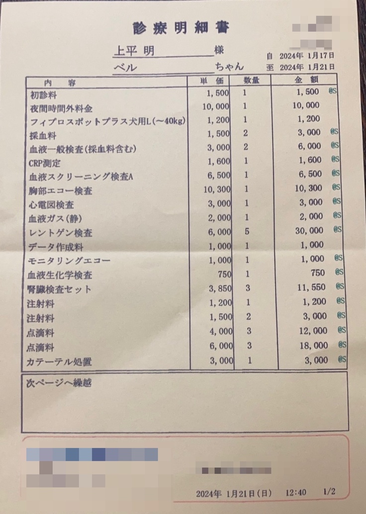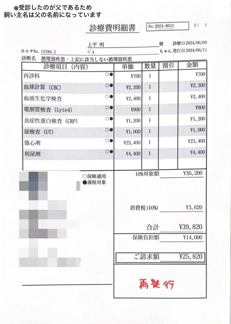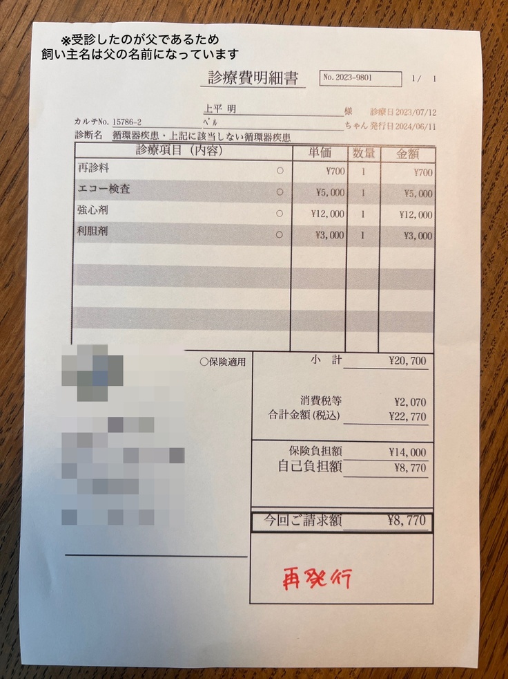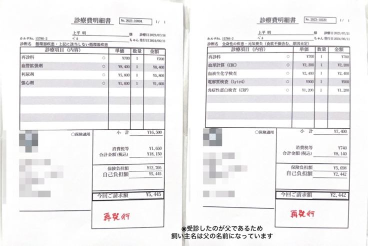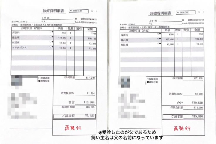 (薬の量が増えたり、エコーやレントゲン、血液検査をすると増額する可能性あり)