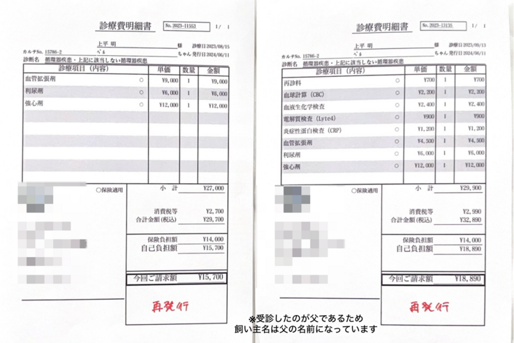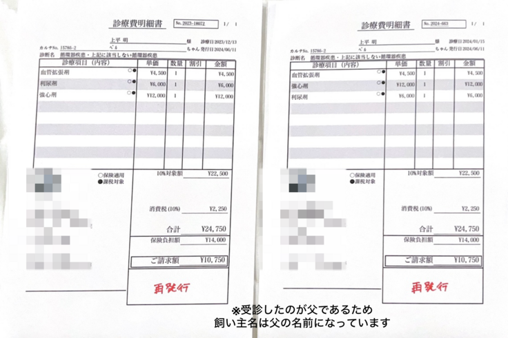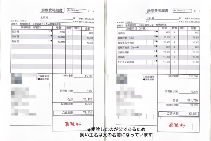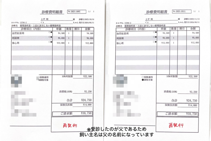 ページ上に掲載している診断書や診療明細書などの資料は全て動物病院から掲載の許諾を得ております。