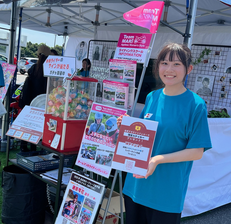 クラウドファンディング開始日は鈴鹿8耐レース期間中で、雫花は、8フェス会場のMFJ女性部会のブースにてお手伝いをしており、たくさんの方とお話しすることができました。