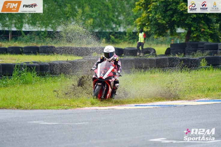 しかし、バトル中に行き場を失い、縁石に乗上げ、転倒を避けるためコースアウトしてしまい、