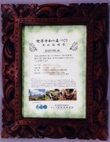 ・バリ製手作り木製額入りの参加者名入り感謝状