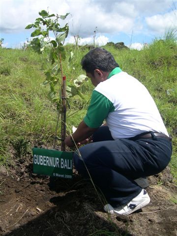 2006年にはバリ島の友人に久しぶりに出会い、「宮崎、お前は東カリマンタン州ばかりで植林しているけれど、バリ州も森林率が22%ととても大変なんだよ。バリでも植林をしてくれないか」といわれました。それまでは「青い海と緑豊かな陸地」のリゾートというイメージでしたが中国並みに森林の少ない島であることを知り「バリでの植林」を始めました。