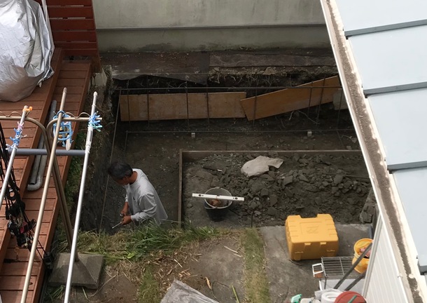 駐車場コンクリートの堀削が完了し、いよいよコンクリートの作業にはいります。