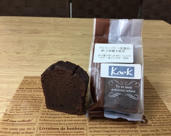 チョコレートの食感を出すためにココアパウダー、お豆腐を生地に練り込んだガトーショコラ風焼き菓子です。女性の方から「罪悪感がなく食べれてうれしい!」多くのコメントをいただいております。