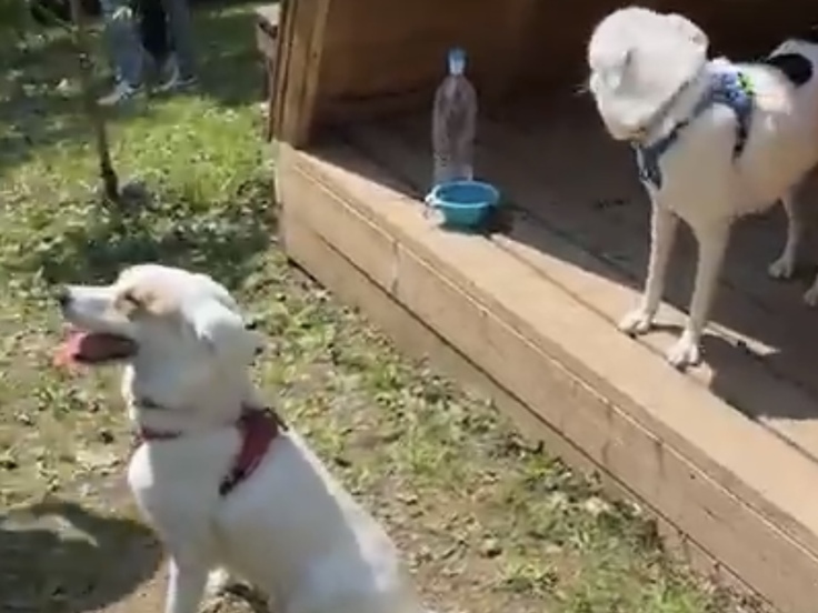 久しぶりに再会したワンコ同士が大喜びの様子は、本当にかわいい。よく覚えています。