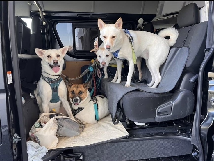 準備の間、犬達は車内で待機です。
