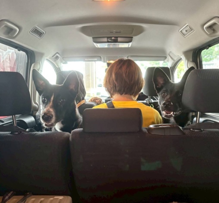 荷物が多いので「アレは積んだ?」とか「これ持ってくの?」とてんやわんや。でも犬達に興奮を伝えることはよくありません。ビシッと指示を出して「ハイ、車に乗るよ!」と颯爽と出掛けます。