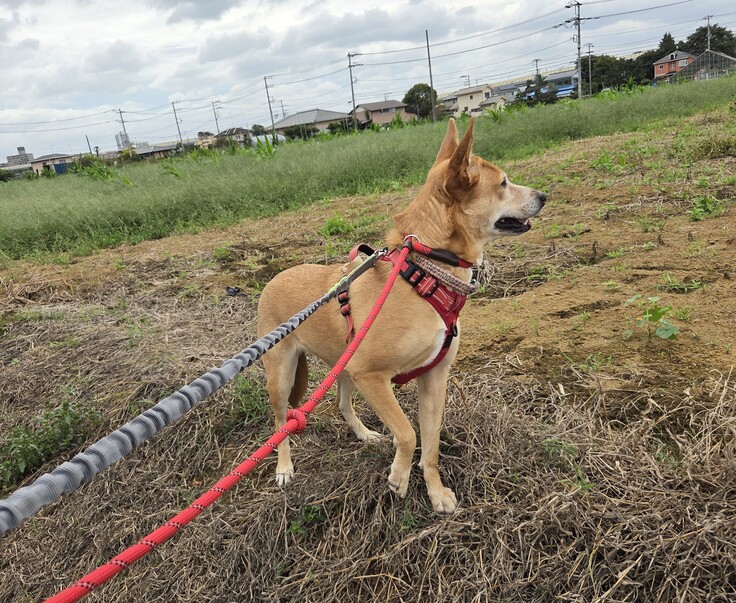 このチャコ、実はお散歩があまりお好きではないのです。というか、切り替えが苦手。行こうよ、と言われて準備をして、みたいな時に気持ちをすぐにつくれない。そんなワンコもいるんです。外に出たらそれなりに楽しそうではあるのに。
