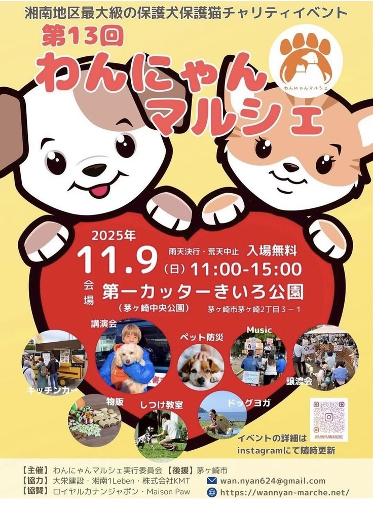 毎年恒例の、わんにゃんマルシェです。みなさん、ぜひこの日のご都合を今からつけて、空けておいてくださいね!