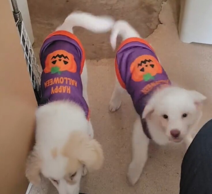 最近はハロウィンの洋服を着ながら元気に成長しています。