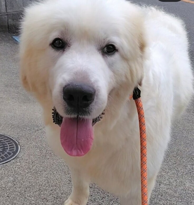 大きな白いモフモフ犬がいたら、それはヴィヴィかもしれません。同行している黄色いTシャツのボランティアに声をかけてみて下さい。大型犬に驚いてしまう犬も居るので、ご家族のわんこをお連れの方は、少し離れたところから。