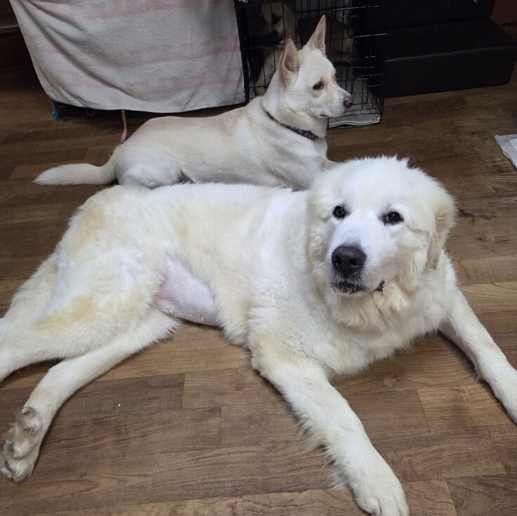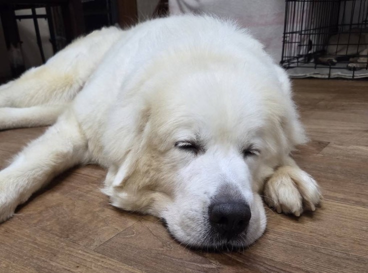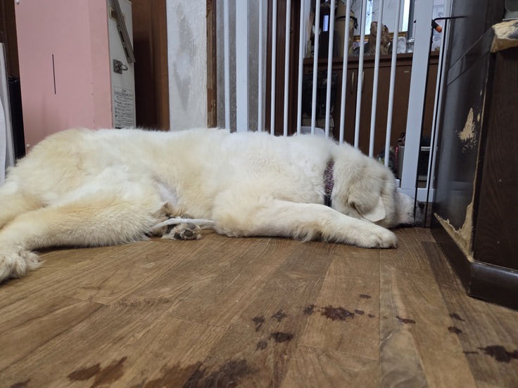 それでもグレートピレニーズとしては、かなり小さい方みたいです。オスだと60キロ位になるコもいるようです。