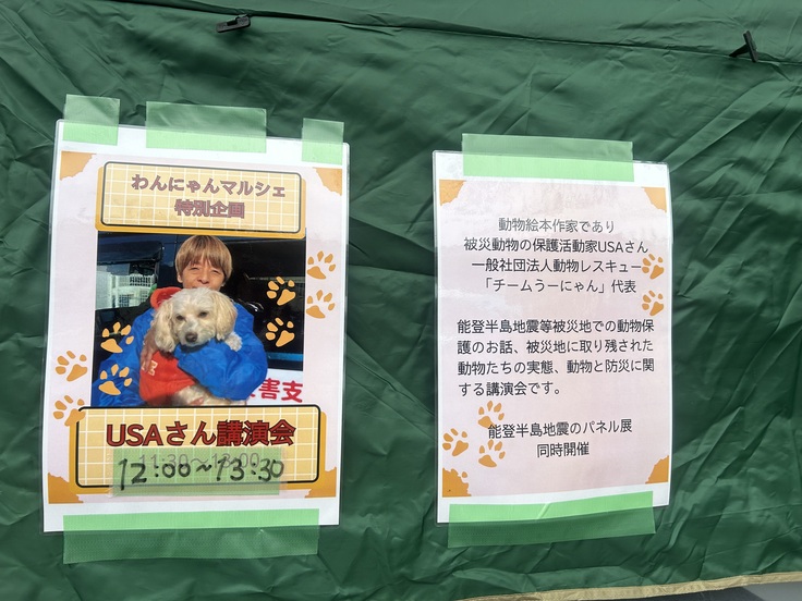 もう1人は、災害の現場最前線で動物の捜索をされているチームうーにゃんのうささんが来てくださり、講演会をしてもらえたこと!実は昨年のこのイベントの注目企画でしたが、事情で延期になったのです。