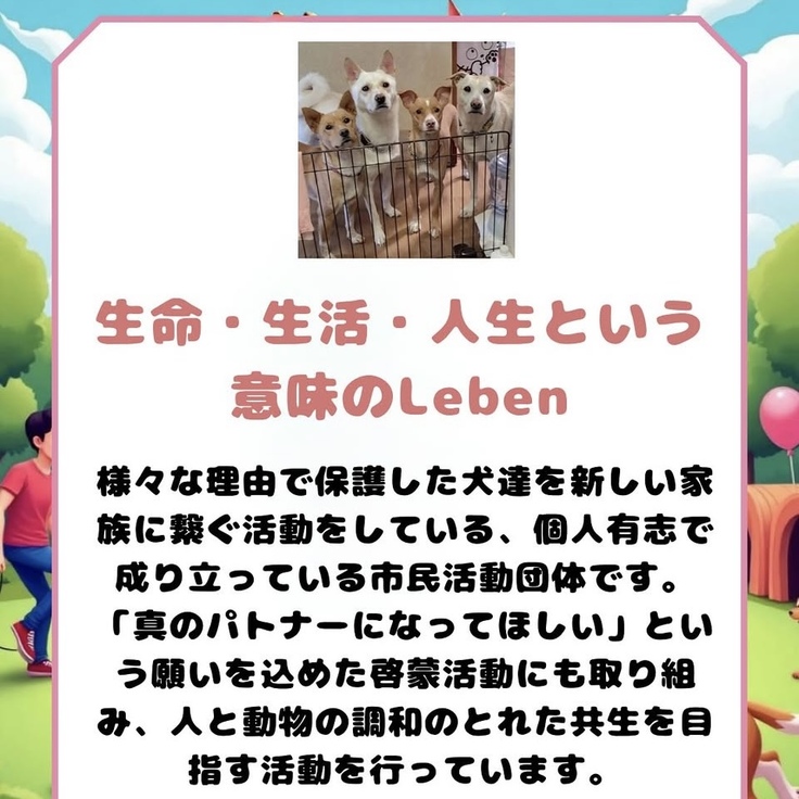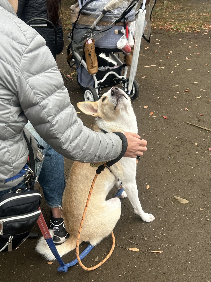 今回は、ビッグゲストが何人もありました。お一人は、沖縄の保護団体ワンズパートナーさんから上地さまが来てくださったこと。こちらの団体経由でたくさんの犬がレーベンにやってきて、幸せに卒業していきました。里親さん達もたくさん会いに来てくださいました。本当に再会できてよかった。