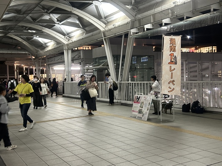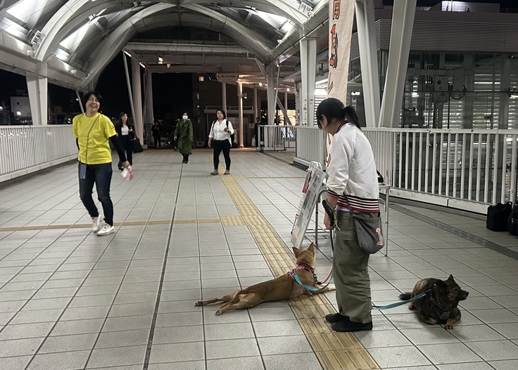 クラウドファンディングのチャレンジが始まってから、何度か駅前で街頭募金の呼びかけをしています。この日は辻堂駅。ボランティアだけでなく、わんこも出動しました。