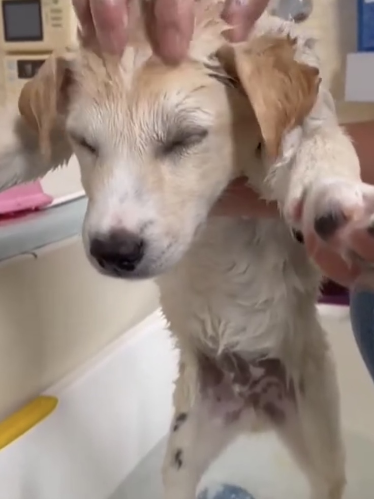 到着したら、お風呂の必要を確認してバスタイムの場合も。寄生虫や皮膚病、ひどい毛玉の可能性がある時は、お薬をつけたり毛刈りや爪切りをしたりすることもあります。時間帯が夜間になることも。この日のうちに写真を撮って、紹介や報告に使うこともあります。