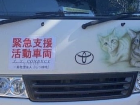 路面の被害も予想されていましたから、夜間の運転もあり安全面での無理もできません。何度か向かう中では、レーベン号では行かれなくて協力団体のしっぽ村さんの車両でお願いすることもありました。